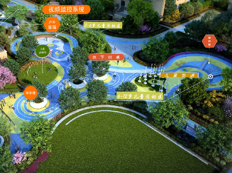 休闲空间架空层、全龄儿童游乐园、植物认知园、健身设施、约700米大跑道、垃圾回收点、消防设施;