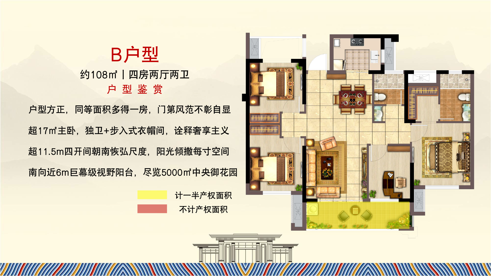 钱隆大第,承袭世茂福晟双品牌园林造诣,不惜成本匠制约5000㎡园林大境,溯源东方传统文化精粹。以三层递进空间——院、园、堂,承续中国归家之礼,彰显世家门第气度。在景观上形成“一轴一环七园十景”的布局,细心打造50余项智慧生活,丰盈居者生活。项目更是以超乎行业标准的规制,打造业主精神之所——泛会所空间,提供丰富多样的社区功能性生活,用心打造老有所养、幼有所乐、壮有所用的全龄生活空间,致敬当代塔尖圈层。