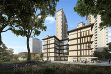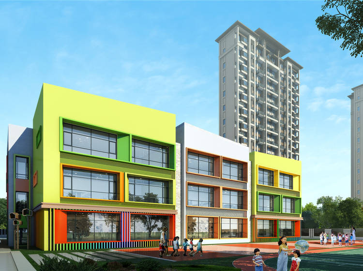 新中式双中庭水景园林、社区幼儿园、蓝色荧光跑道、全龄段多功能馆、多功能球场等