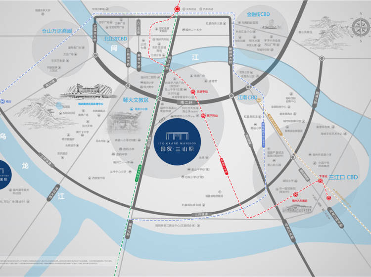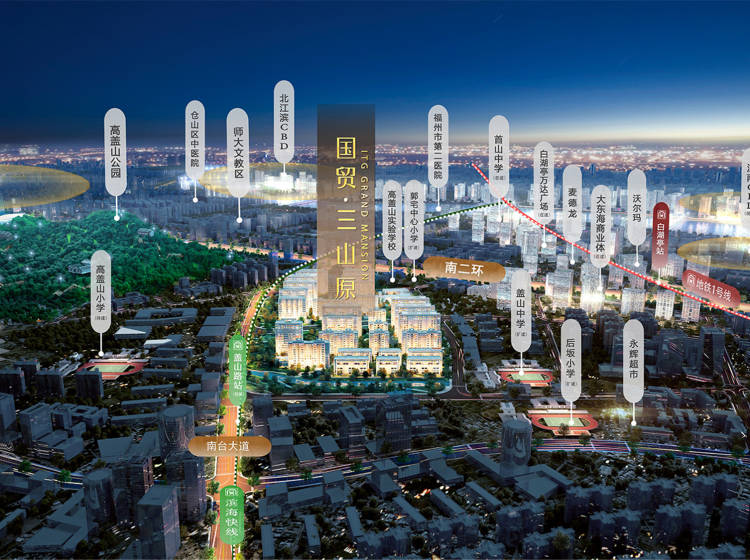 项目由国贸地产匠心擘铸,优据福州南二环,抢占区域发展新起点,地铁1号线、4号线(规划中)、6号线(规划中)纵横贯通,还将新增F1滨海快线,无阻通达全城。20分钟生活圈内覆盖白湖亭万达广场(在建)、大东海商业体(规划中)、海峡会展中心、奥体中心、仓山万达等,寸步之间揽尽一城精粹。3大公园比邻在侧,依高盖山而筑,真正实现进享繁华,退守繁花。6所优质学府棋布周围,架构全龄段优质教育服务体系。项目内规划有超大中心花园,以五进式归家动线,营造现代版的四水归堂。