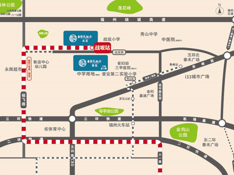 【学校】晋安区省直机关幼儿园、战坂小学、象峰中心小学、晋安区实验小学、晋安区第二实验小学、秀山中学、国家检察官学院福建分院等;