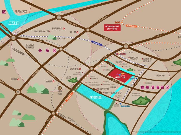 一铁三港四轨九线,通达全球的交通枢纽,福州长乐国际机场、松下港、高铁福州东站等海陆空交通枢纽10分钟可达,福州四环通车,“五横四纵”快速路网与地铁6号线、7号线、福平铁路、滨海新城快线新城立体交通路网,内与福州老城区半小时通勤,外与全球便捷互联互通。醇熟交通配套,推动大福州时代加速前进。