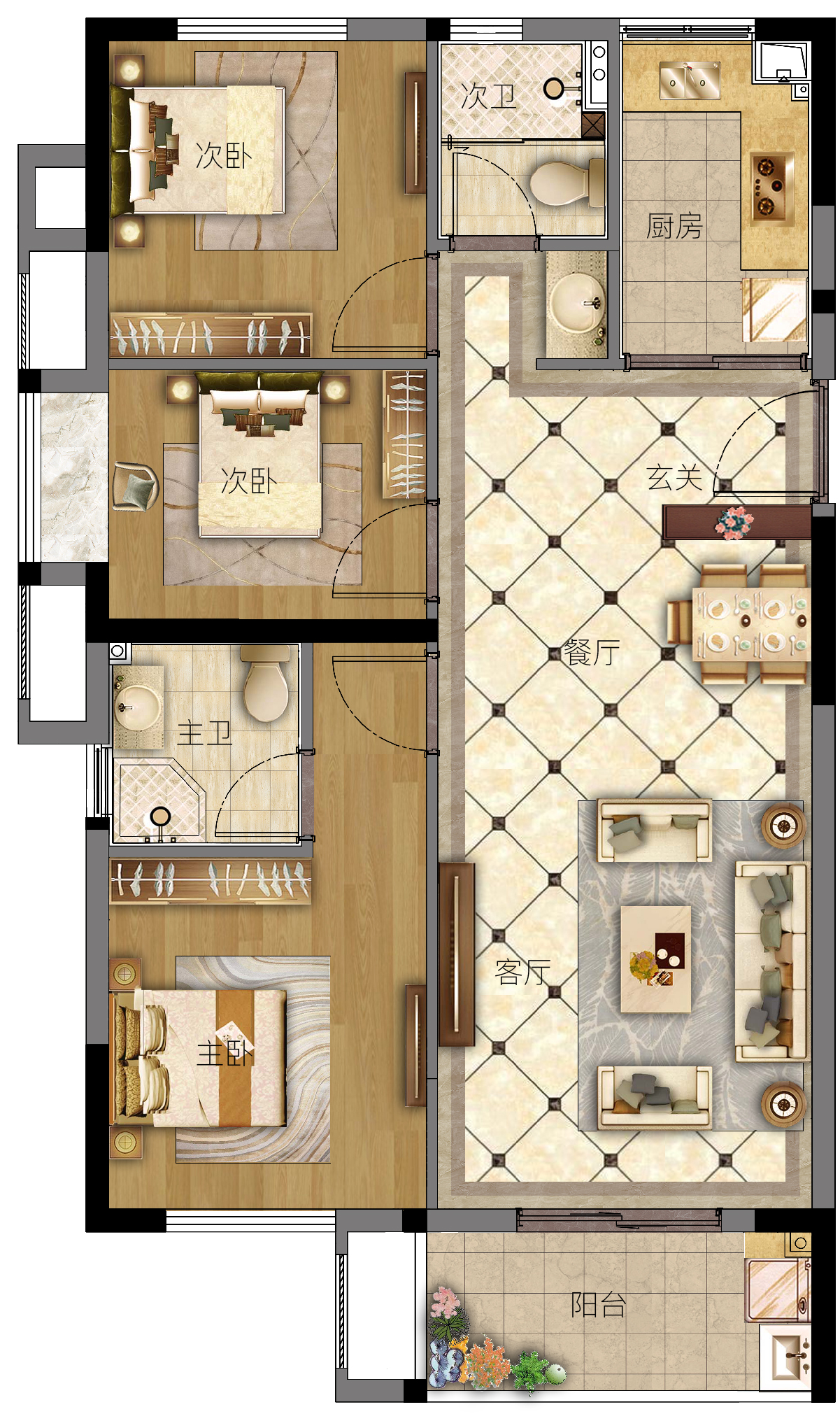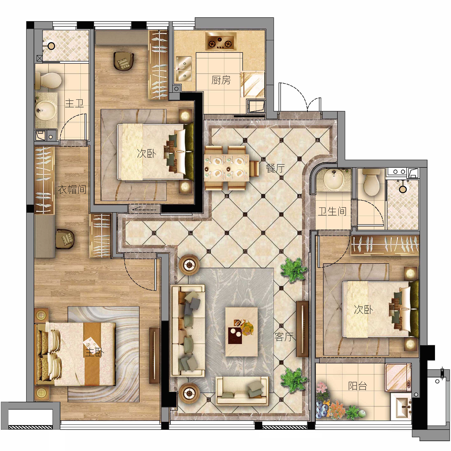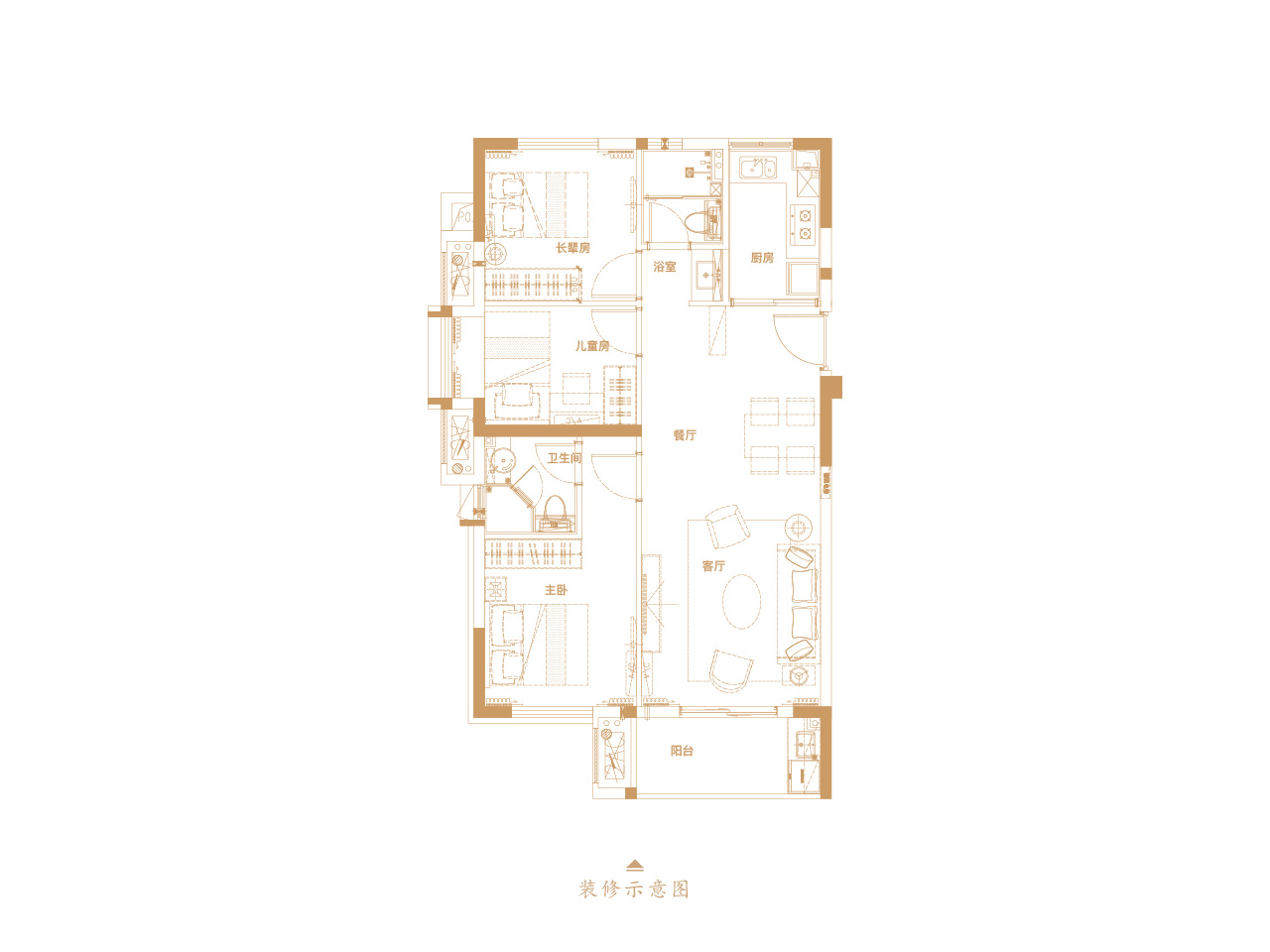3室2厅2卫-D户型 3室2厅2卫 90㎡