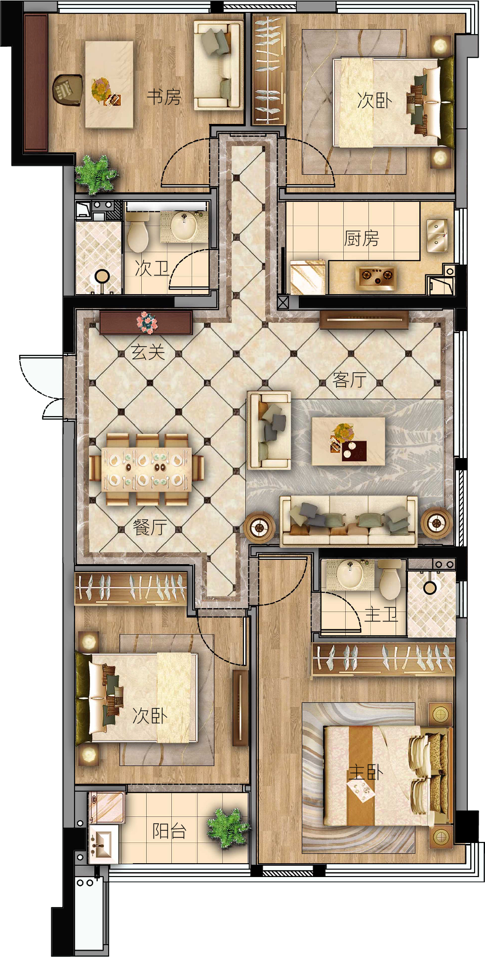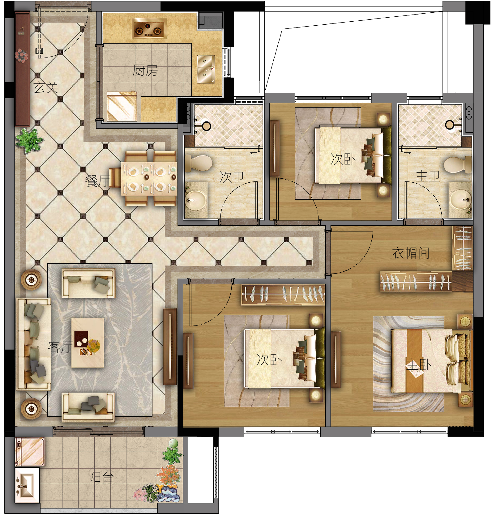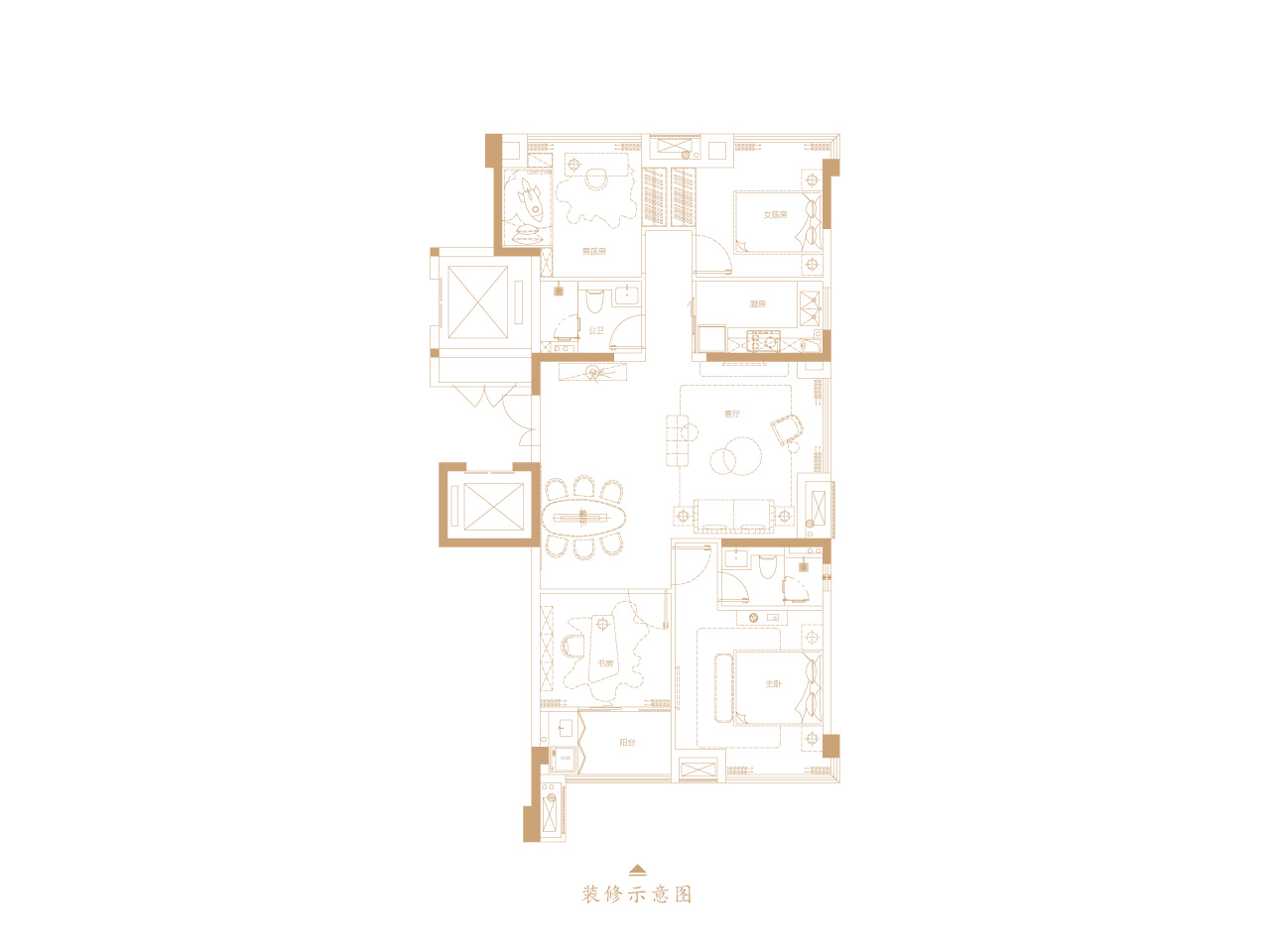 3室2厅2卫-D户型 3室2厅2卫 90㎡
