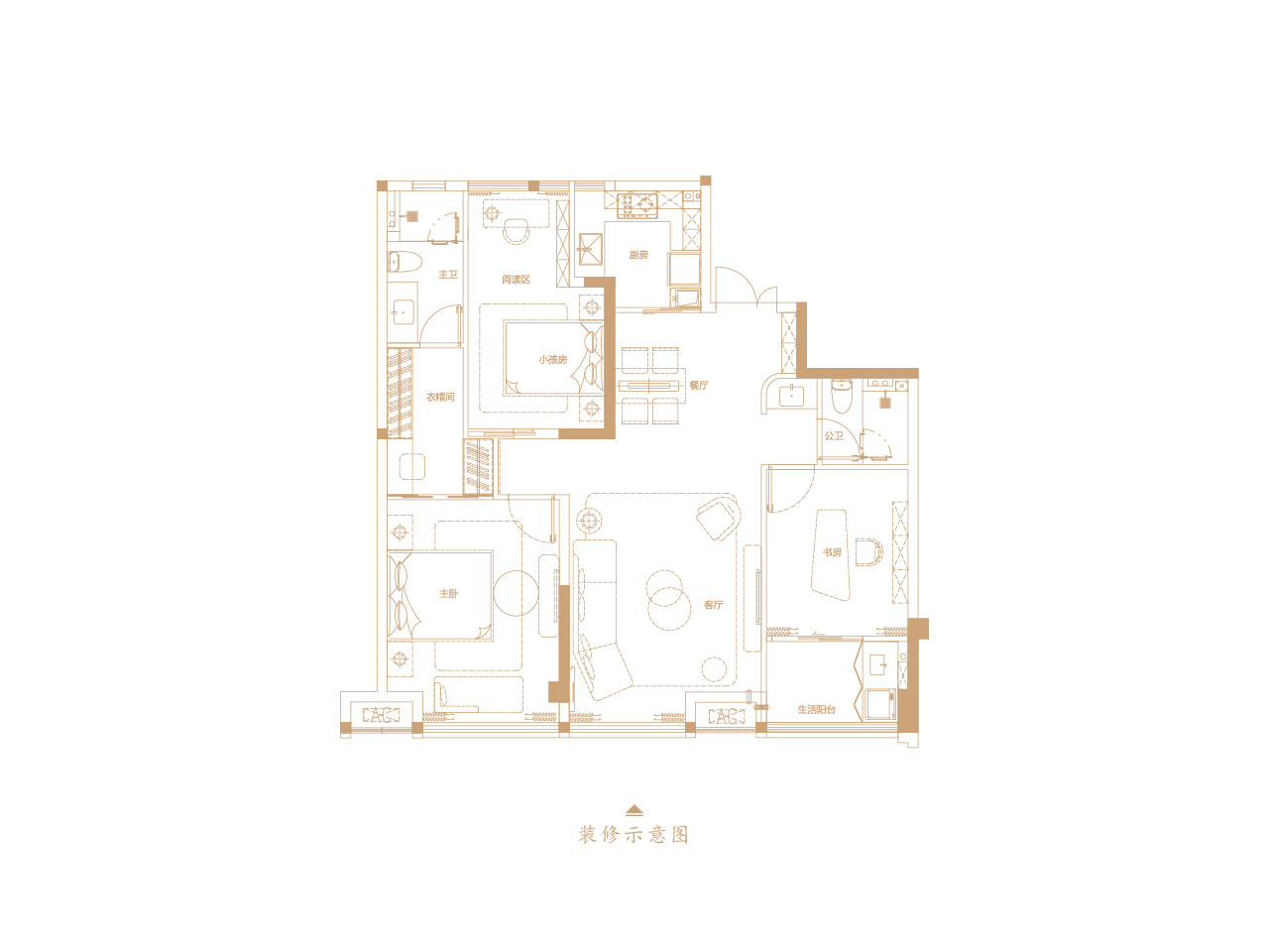 3室2厅2卫-C户型 3室2厅2卫 90㎡