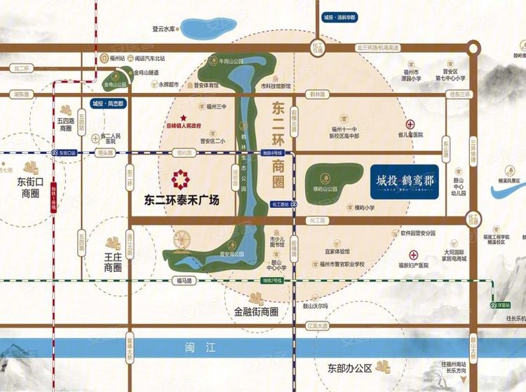 【商业资源】:150万㎡福建最大的城市综合体东二环泰禾广场、宜家综合体(建设中)、王庄商圈等繁华拱卫;同时500亩福州软件园晋安分园落地东二环。