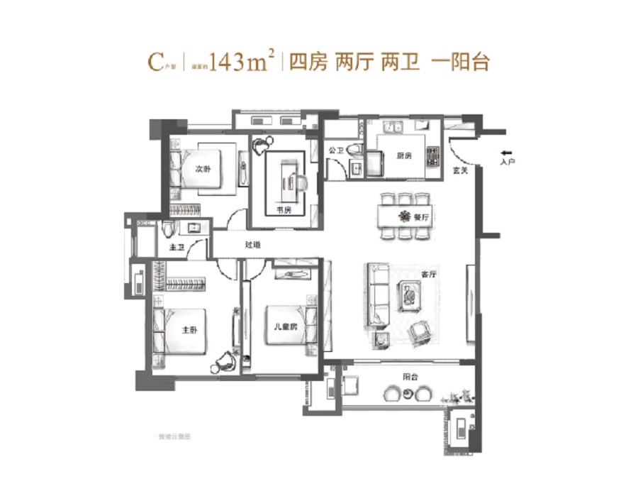 4室2厅2卫-建面约143㎡C户型 4室2厅2卫1阳台