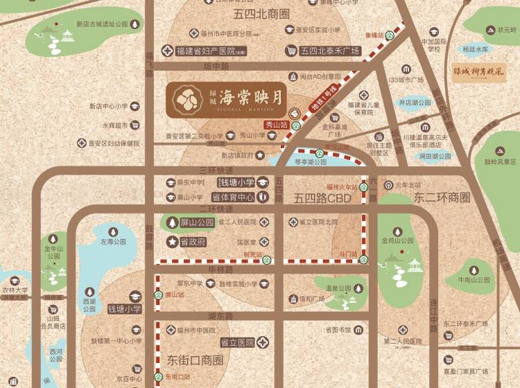 绿城中国,高品质营造专家,连续12次荣获“物业服务百强满意度先进企业”排名前列。传承27载精深造诣深耕榕城,三年五子,创领美好生活。绿城·海棠映月择址五四北板块核芯,约20米地铁1号线秀山站,4站到五四路,5站省府屏山站,同频鼓楼繁华生活圈。周边汇萃五四路CBD、五四北商圈2大商圈与琴亭湖公园、罗汉山公园、井店湖公园3大生态公园。以1.6低密容积率,规划7栋大平层,栋栋仅7层,围合式大中庭景观,9大全龄景观配套,超1100㎡架空层,织锦美好人居样本。一梯两户约149-158㎡华贵美宅,敬献层峰人士。