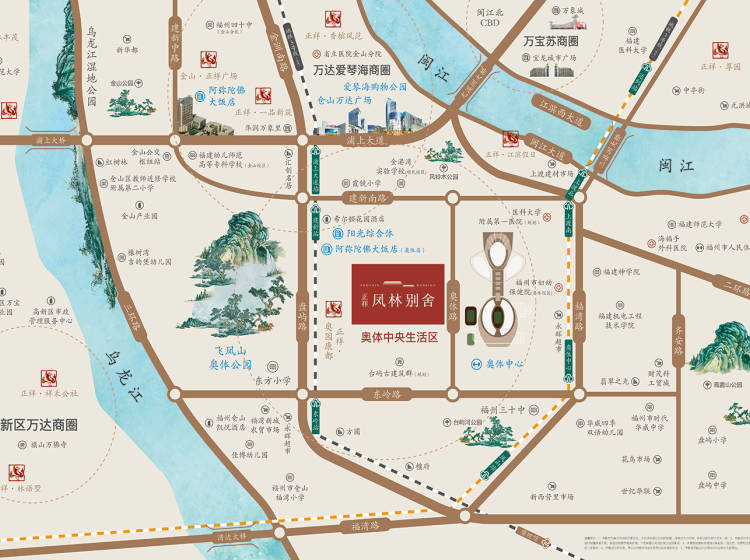 生活配套:海峡奥林匹克体育中心、飞凤山公园