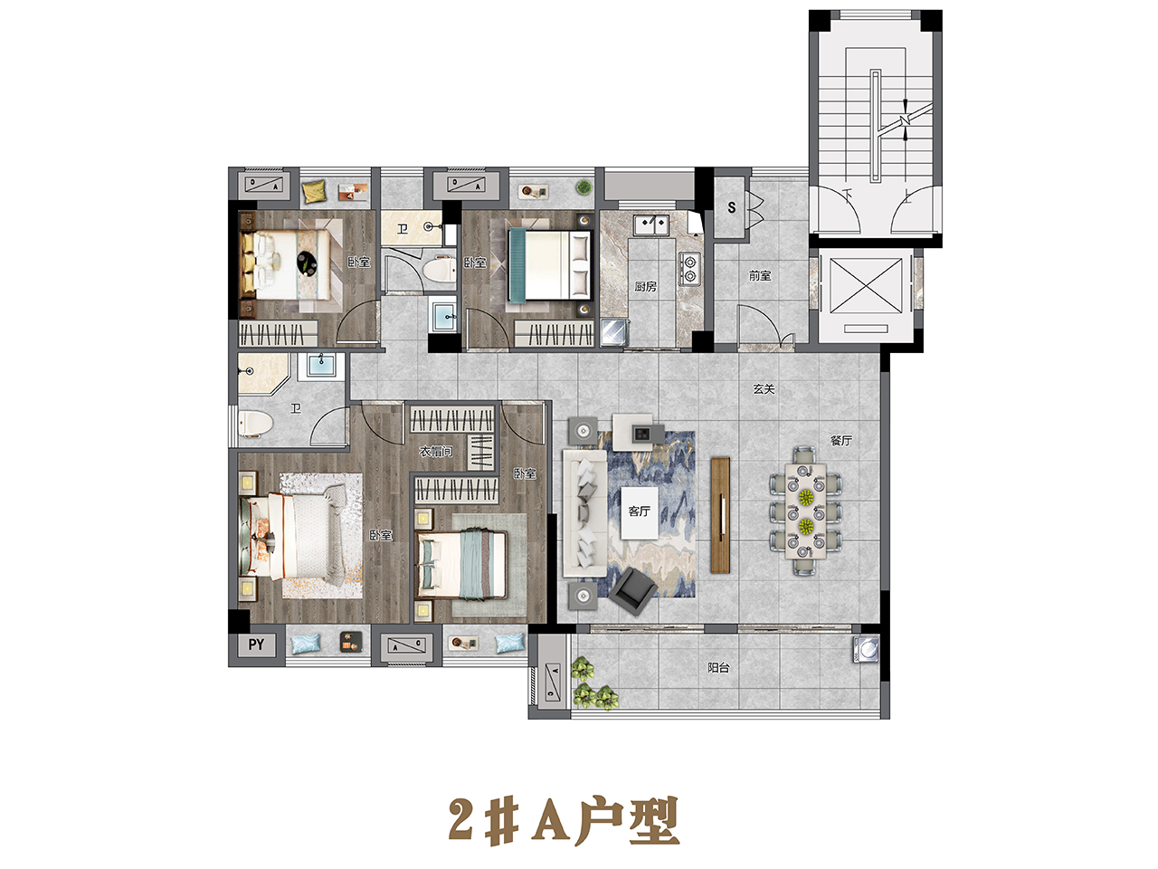 4室2厅2卫-2#A户型建面约143m²四房两厅两卫一