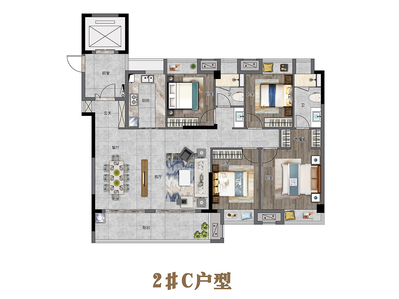 4室2厅2卫-2#C户型建面约143m²四房两厅两卫一