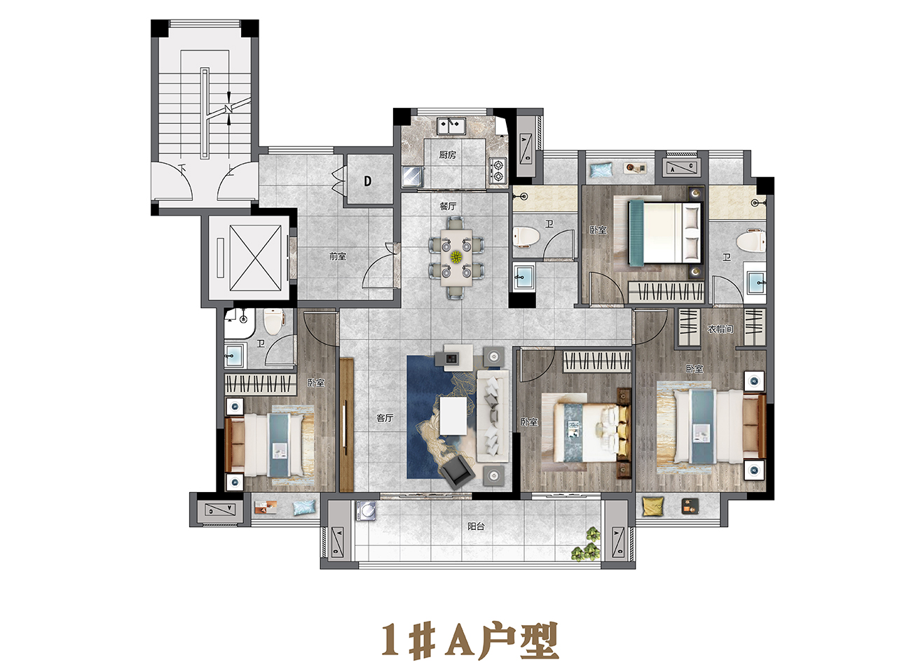 4室2厅2卫-1#A户型建面约143m²四房两厅两卫一