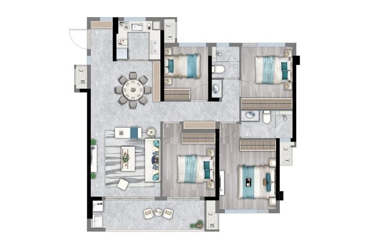 4室1厅2卫-一期6#7#8#9#120㎡-c户型图
