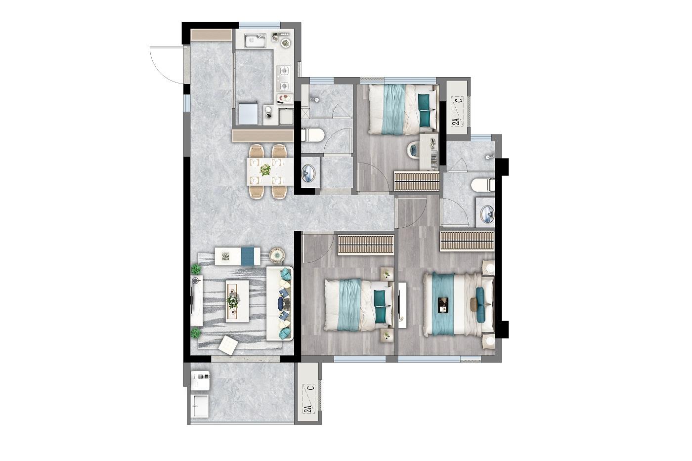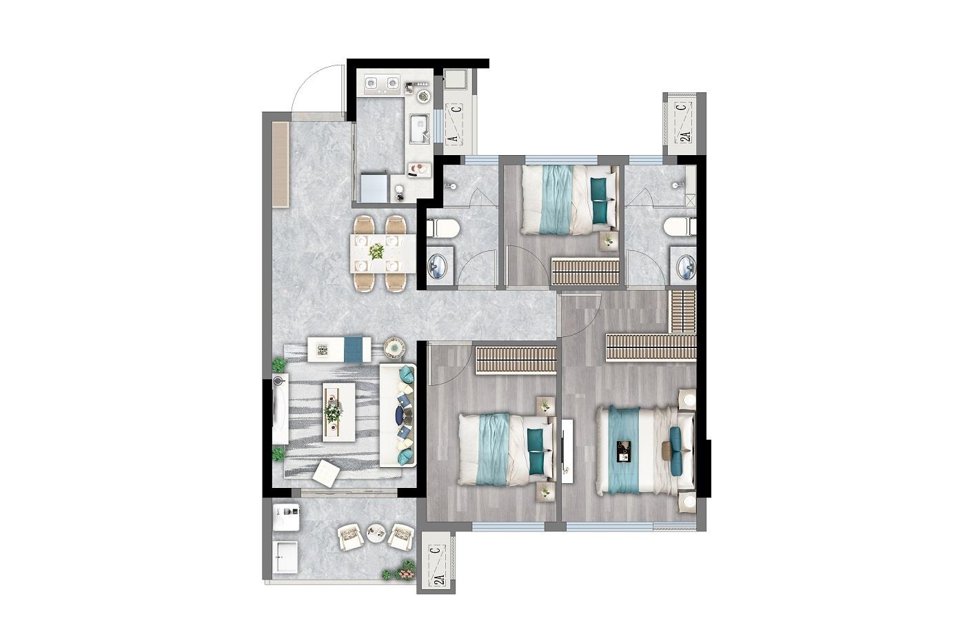 3室1厅2卫-一期1#2#3#5#89㎡-b户型图