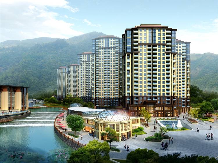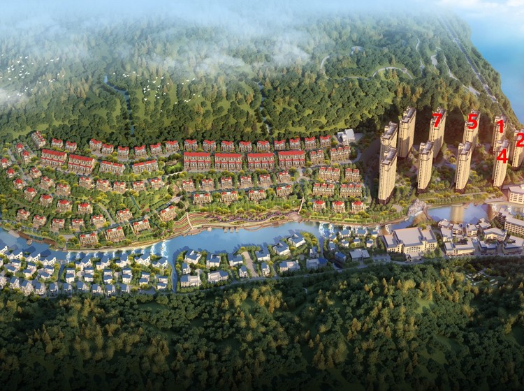 小区规划了11栋29-30层高层住宅、69栋别墅、53栋企业会所、1.5万平米商业别墅、1600平米幼儿园、一个大型温泉会所、部分汤屋以及一个高端品牌的精品酒店。