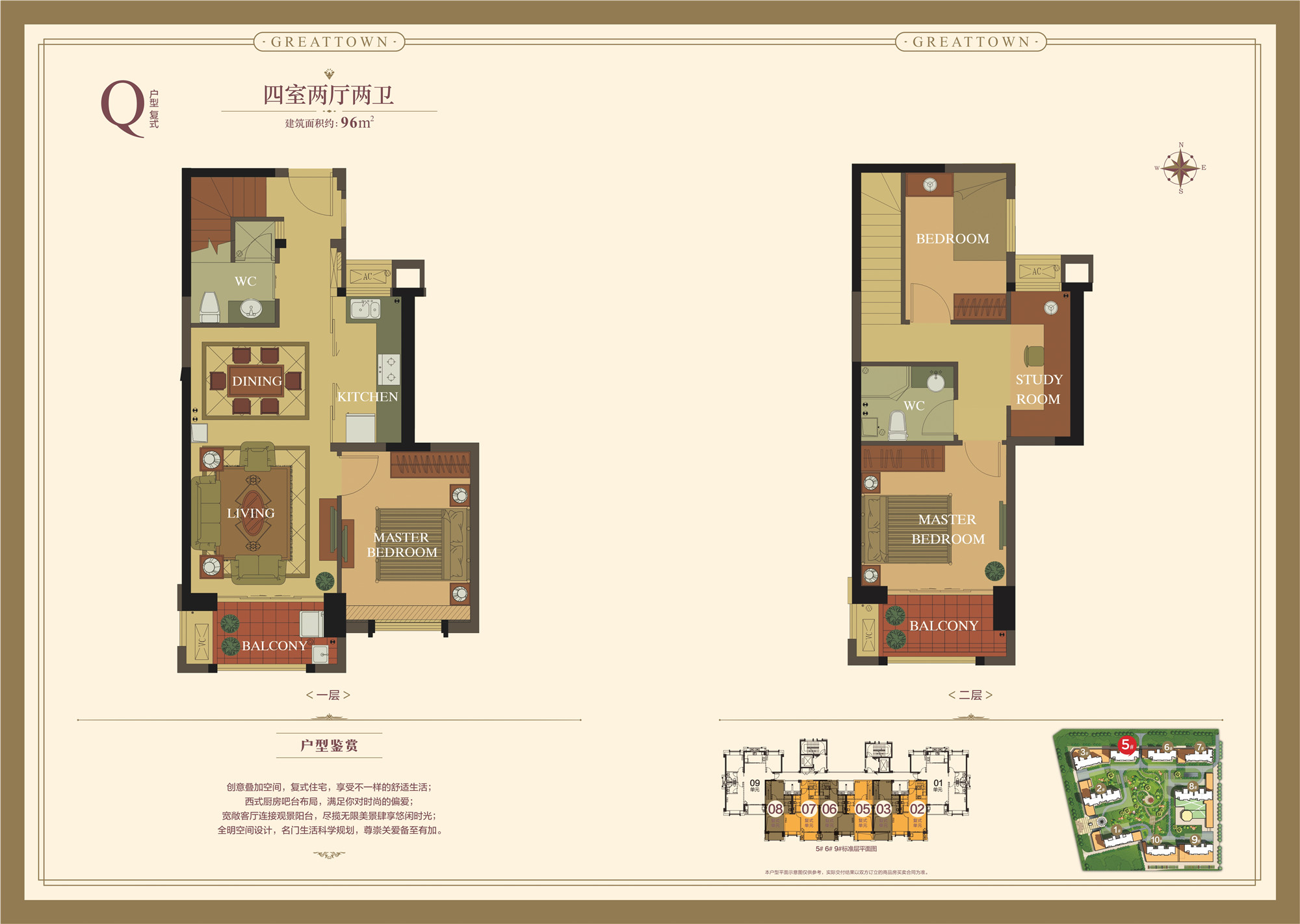4室2厅2卫-Q户型 建筑面积约96㎡