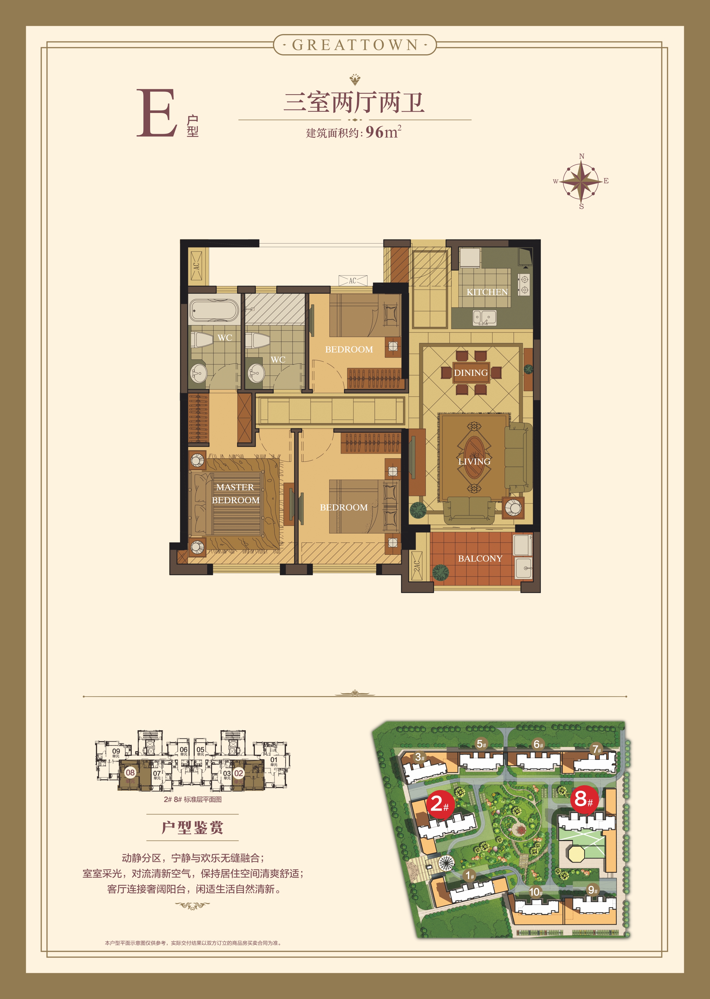 项目总建面为77.12亩,9栋ARTdeco艺术风格建筑,优质经典,岩片真石漆和干挂石材外立面,精工考究。43㎡两房、83㎡三房、97㎡大复式、126㎡四房轻奢新品,户户朝南,阳光通透,挑高入户大堂设计,奢华大气。内有ARTdeco 艺术园林,独占4000㎡城市中心御花园,尽享自然之境。名城珑域,更注重生活品质,首创福州3000㎡社群主题会所——港式young会所,量身打造业主私人休闲空间,玩转圈子生活。