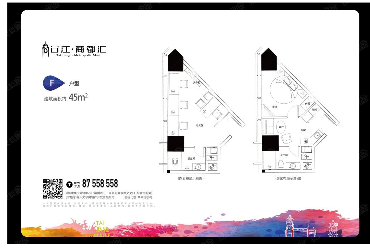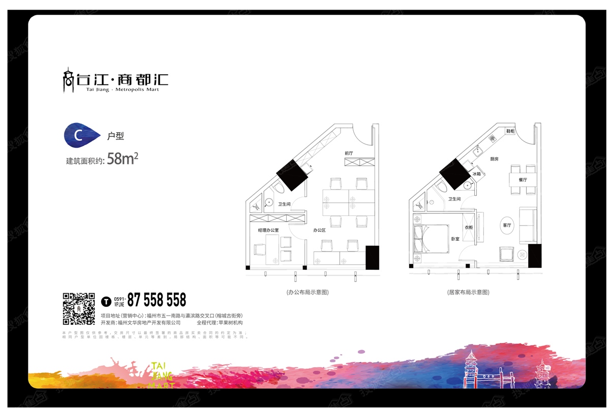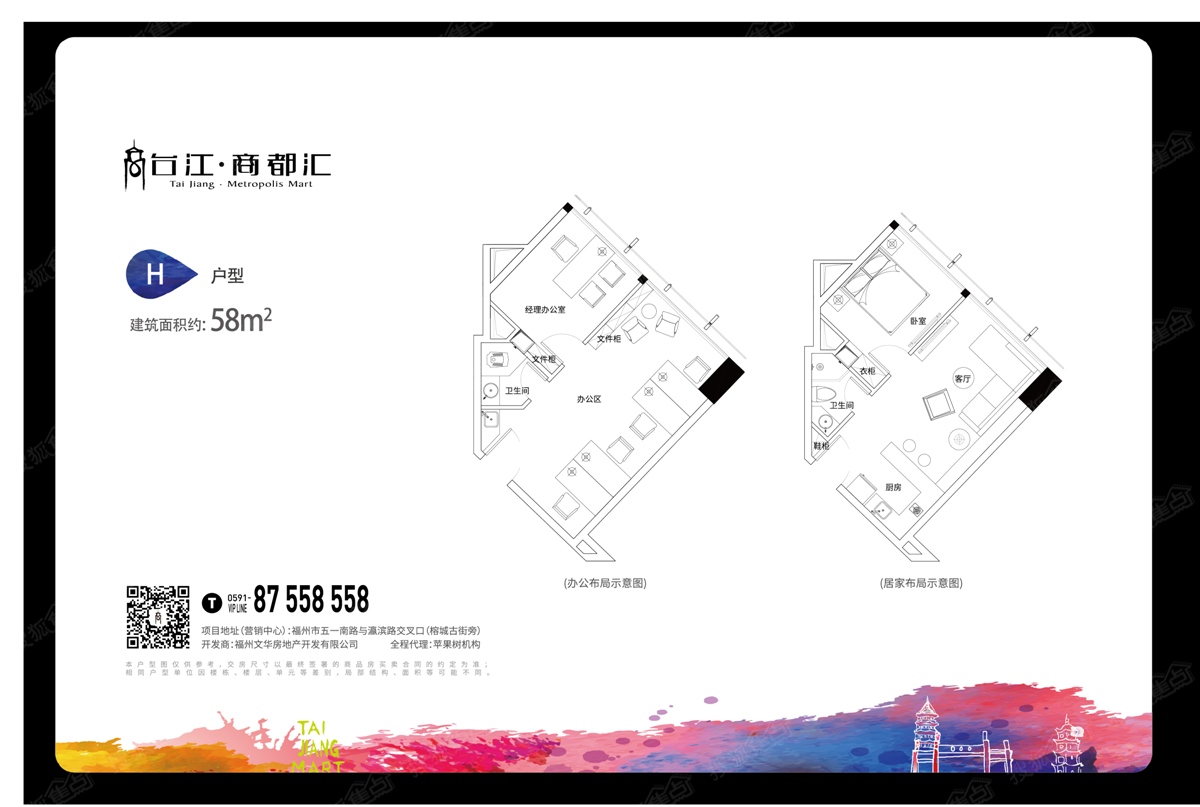 5.2万方体量,汇聚6层商业MALL及28层时尚SOHO,是城市黄金分界线五一路上的商文化地标,135米的高度傲立闽江滨,LOW-E中空玻璃,VRV空调系统,以写字楼的标准打造现代化的灵动SOHO空间,SOHO采用精装标准,商住两用,拥有福州排名前列服装云创空间服务平台