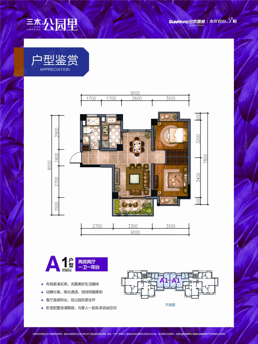 2室2厅1卫-A1户型
