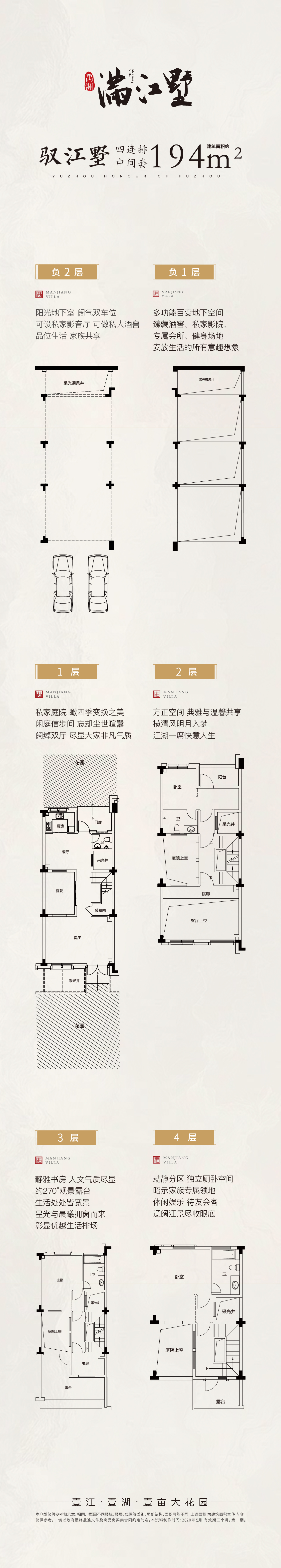 4室2厅4卫-驭江墅 四连排 中间套 建面约194㎡