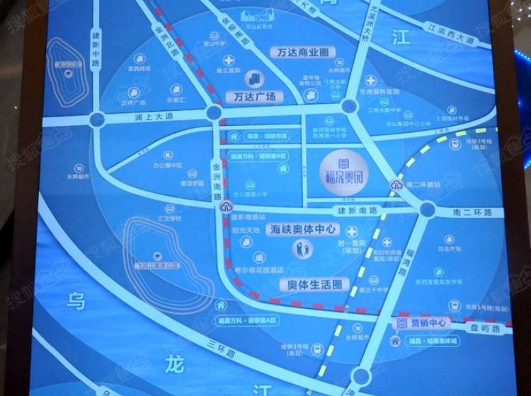 浦上乐都汇购物中心、仓山万达、爱琴海购物中心、永辉超市、阳光天地、海峡奥林匹克体育中心、飞凤山奥体公园、南江滨公园