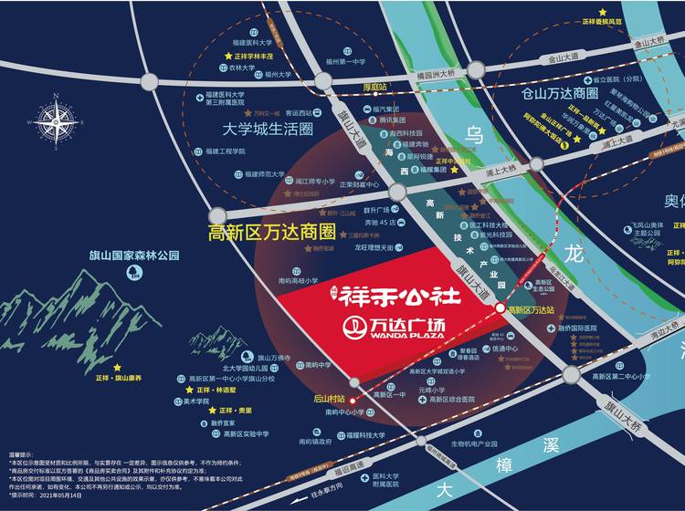 祥禾公社位于福州·高新区·乌龙江南大道,总占地211亩,建筑面积约60万平方米,是高新区域内超大型的商业综合体项目。作为福州城市“南进”发展重要版块——高新区的行政、文化、旅游、商务、科研配套汇集于此,地块周边高端住宅林立,大学城、高新产业园、商业综合体等规划配套早已成形,旗山、乌龙江等生态资源的同步环绕,造就了极为优越的地段价值。加之,项目周边路网配套完善:以乌龙江大道沿线为核心枢纽,联动橘园洲大桥、浦上大桥、湾边大桥及三环快速路,构织了一张“三横两纵”立体交通路网,同时规划中的地铁2、3、8号线与项目咫尺呼应,缩短了达至各个区域的时间成本。一个全方位的新城市中心生活圈将在此呈现。