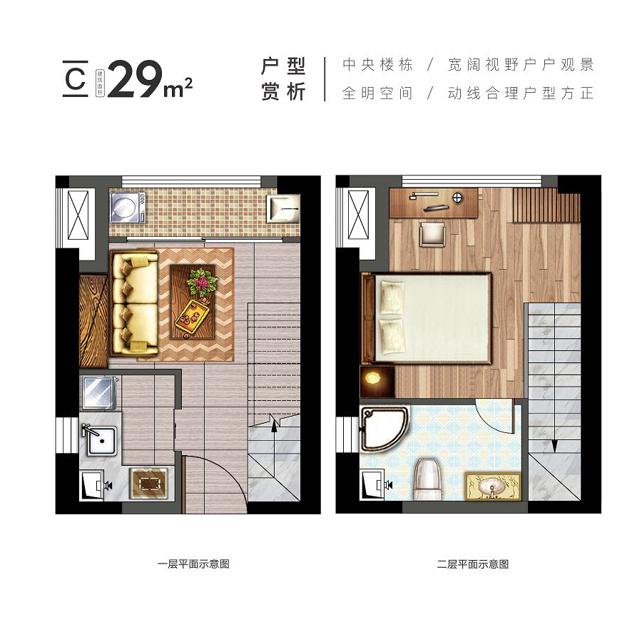 在商住功能的规划上,以5米层高、双向采光的SOHO产品设计为基础,打造29-47㎡的复合式创享空间。将专属的“社群空间价值和服务体系”融入住区的体验功能中,打造极具特色“禾心”配套体系。计划在住区空间内落位社区食堂、公共会客厅、共享厨房及文化图书馆等功能配套,让客户享受到全方位的升级化居住服务体验。