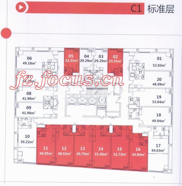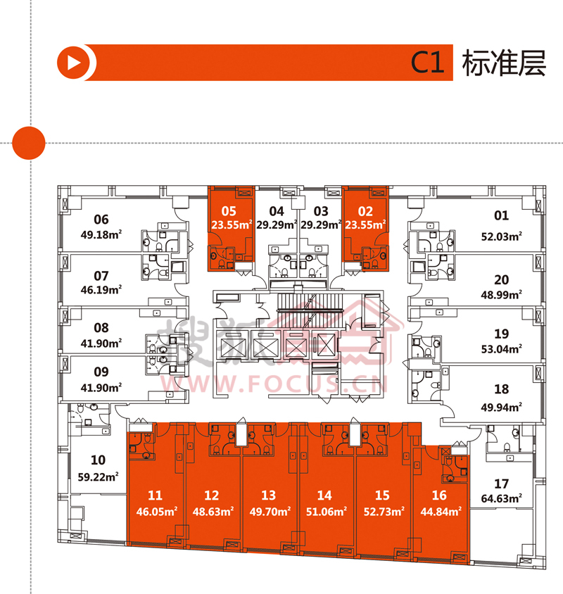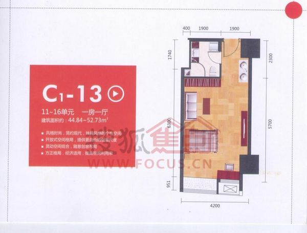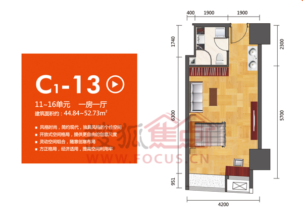 1室1厅1卫-万达SOHO C1-05 11-16单元 1房1厅 44.84-52.73㎡