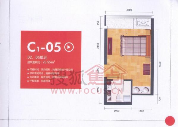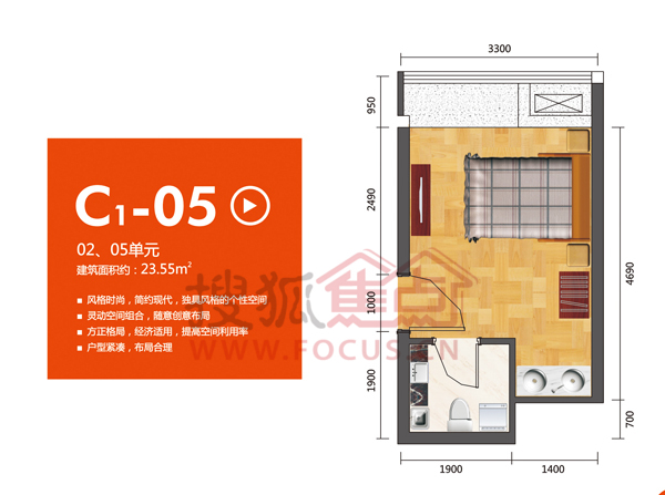 0室-万达SOHO C1-05 02、05单元 23㎡