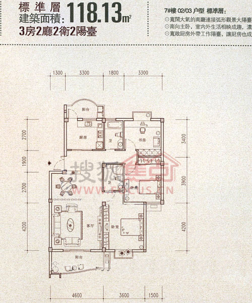 3室2厅2卫-日出印象7#楼 02、03单元 3房2厅2卫2阳台 面积:118.13平方