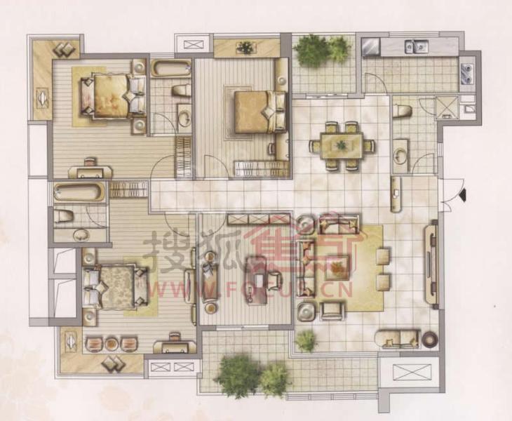 中天金海岸领江十栋 0405户型 4室2厅2卫1厨141㎡