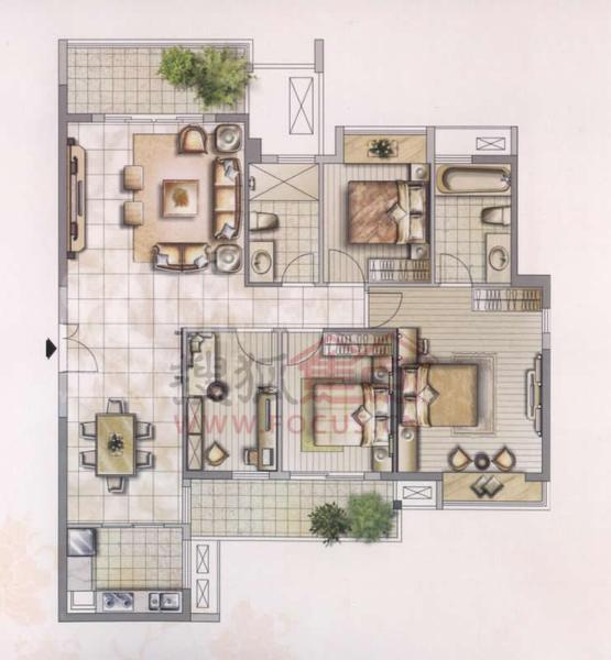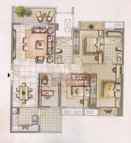 中天金海岸领江十栋 02户型 3室2厅2卫1厨125㎡