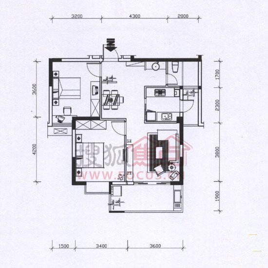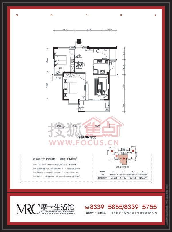 2室2厅1卫-摩卡生活馆 福州 摩卡生活馆 户型图 3#楼302 2室2厅1卫1厨