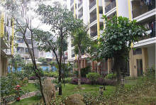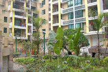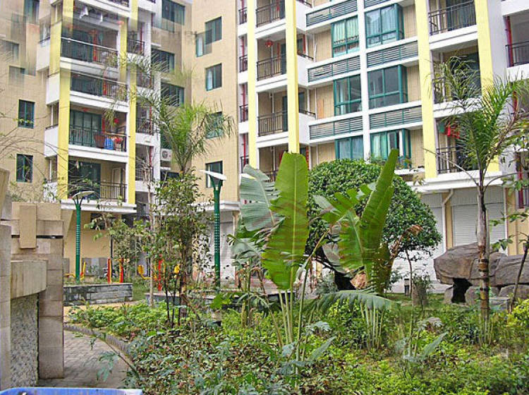 十里鼓山蜿蜒灵动,树林葱茏,虫萤嘶语,庭院里七彩扶桑、大王椰子,和风轻拂,宁静致远。青翠欲滴的绿地,幽雅别致的小亭,童趣洋溢的亲子乐园,品茗、聊天、赏景、玩耍,横生一段生活情趣。