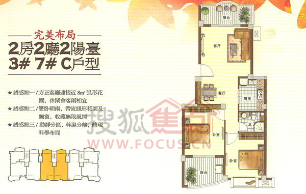 2室2厅1卫-半山千叶3#楼7#楼C户型