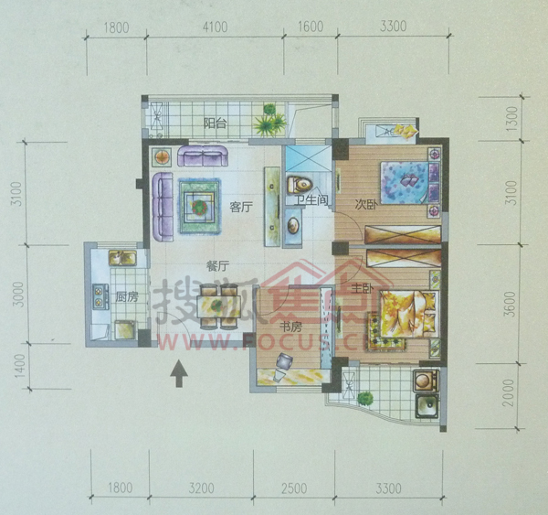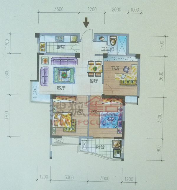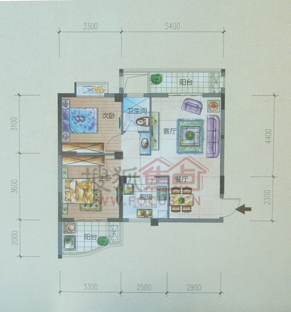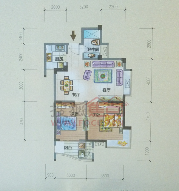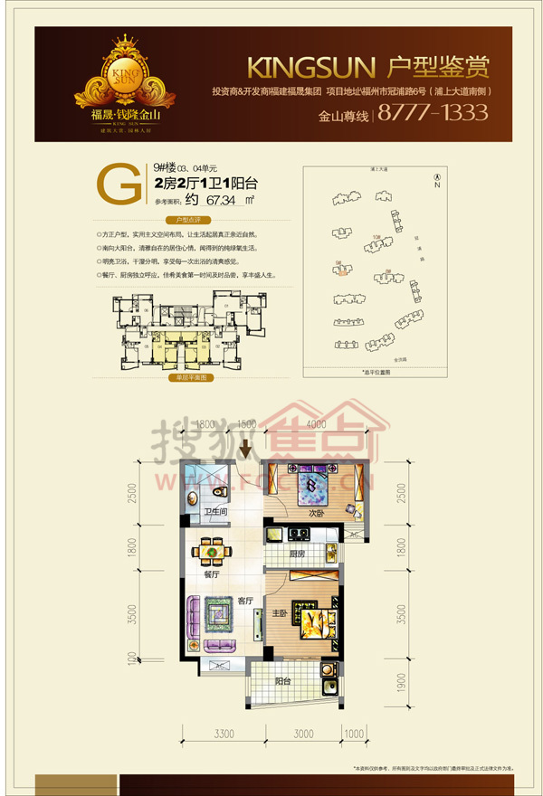 2室2厅1卫-钱隆金山G 9#楼03、04单元2房2厅1卫1阳台67.34㎡