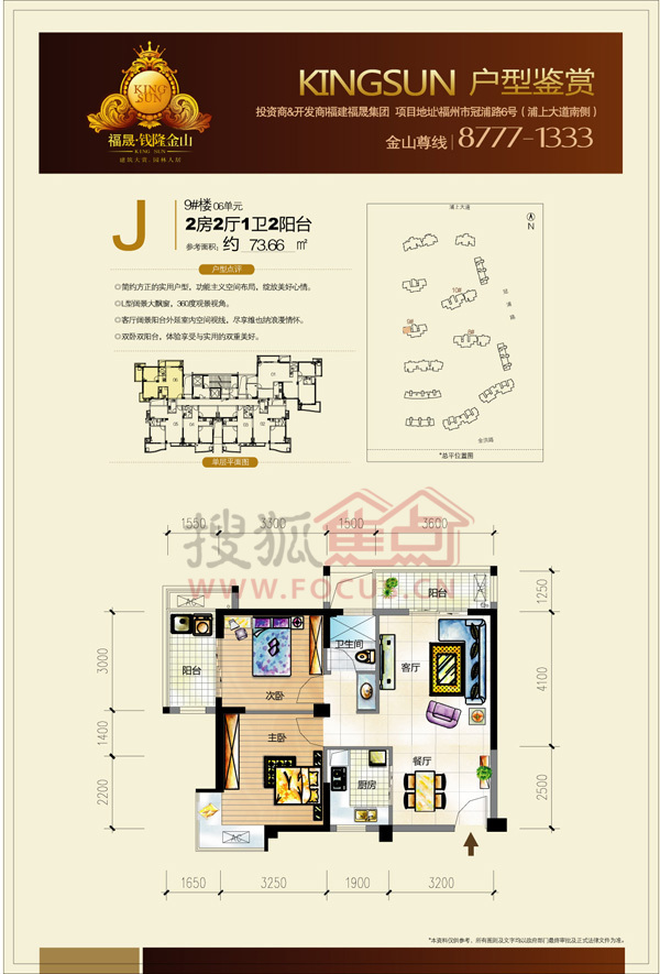 2室2厅1卫-钱隆金山J 9#楼06单元2房2厅1卫2阳台73.66㎡