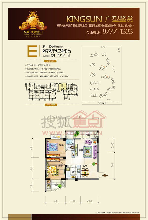 2室2厅1卫-钱隆金山E 8#.10#楼03单元2房2厅1卫2阳台78.59㎡