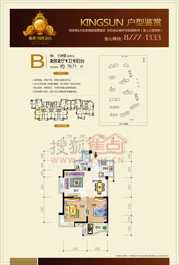 2室2厅1卫-钱隆金山B 8#.10#楼08单元2房2厅1卫1阳台78.71㎡