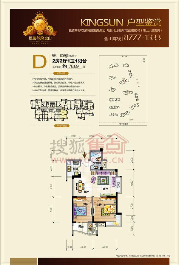 2室2厅1卫-钱隆金山D 8#.10#楼05单元2房2厅1卫1阳台78.89㎡