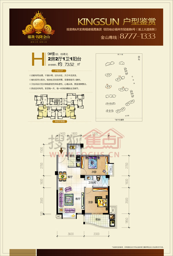 2室2厅1卫-钱隆金山H 9#楼02、05单元2房2厅1卫1阳台73.52㎡