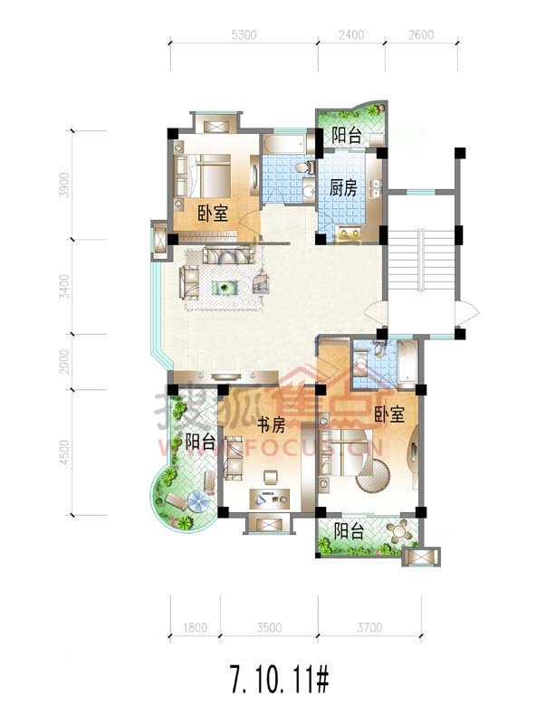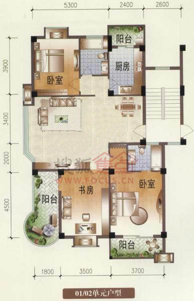3室2厅1卫-都会华彩 7#10#11# 0102单元 3室2厅1卫1厨