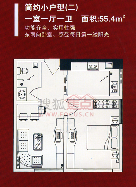 1室1厅1卫-鸿达家源55.40㎡