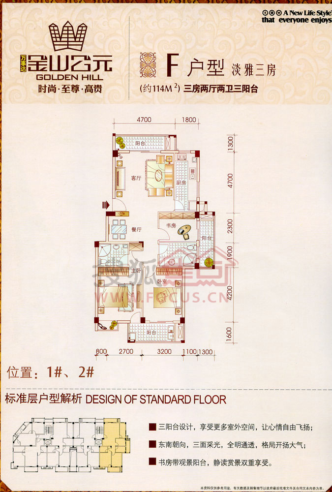 户型精品:多样精彩户型,以“紧凑、实用、舒适”为指导,以精致衡量尺度,以实用为标准;素雅一房、优雅二房、典雅小三房、高雅大三房,各种户型布局合理,小则温馨舒适,大则宽敞实用,各具特色,在强调舒适度的同时实现各种户型的均好性,用实用的形式、到位的尺寸展现生活的舒适感受,满足居家及投资的各种需求。