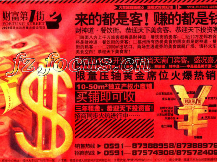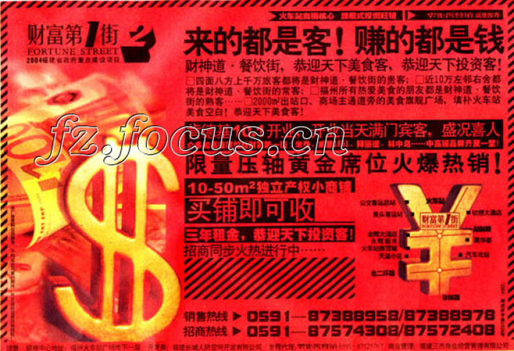 财富排名前列街是由福建长城人防空间开发有限公司斥资9000万元兴建的一个集购物、休闲、娱乐、餐饮、服务与一体的大型商业广场。项目总占地面积23000平方米,其中,7000平方米为目前火车站少有的出租车和社会车辆集中停放处:商业面积16000平方米,是福建市民及成千上万旅客的购物、休闲、娱乐、餐饮的又一理想场所。