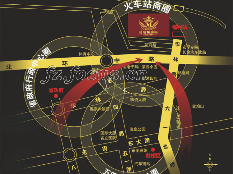 曼哈顿广场位于福州火车北站广场西侧,零距离对接火车站侯车室,地理位置少有,商业价值、投资价值无法估量。年内温福铁路、福厦铁路将开通运行,三环路、机场高速年内也将完工,火车北站扩容工程已开工,2011年3月完工,地铁1号线规划已确定,火车北站将已全新的面貌向世人展示省会城市的形像,曼哈顿广场坐享无限的升值空间。