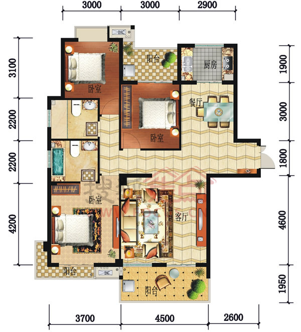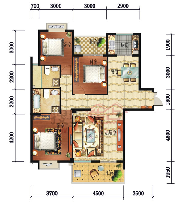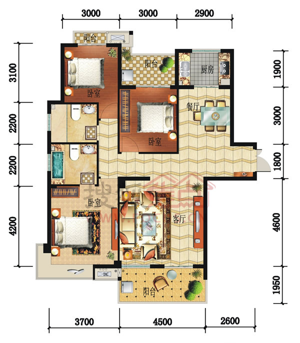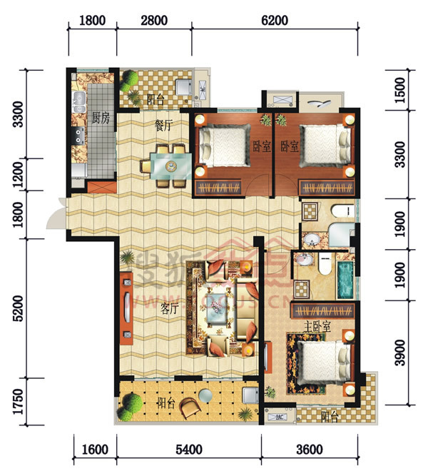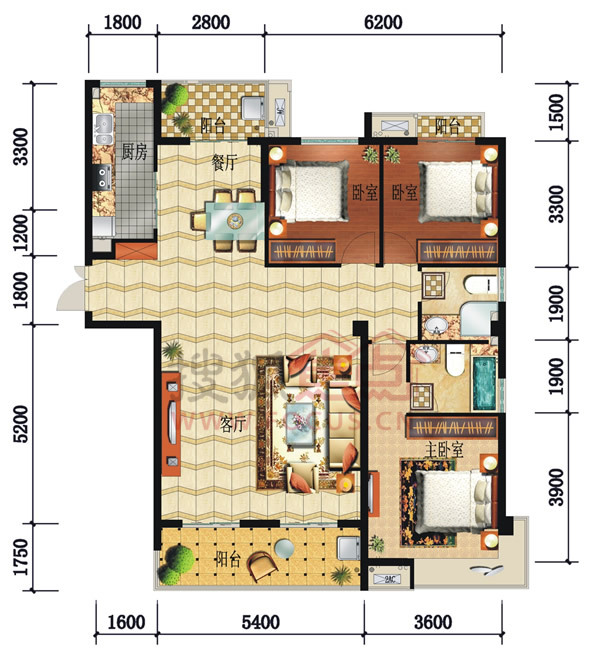 3室2厅2卫-融侨 江南水都兰邑 C(偶数层) 三房两厅两卫三阳台