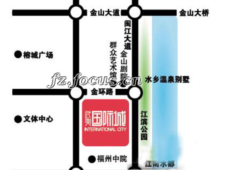 项目东侧为水乡温泉别墅,南江滨公园;西侧为金山文体中心,有游泳馆、网球场、门球场等国际标准运动设施;北面为金山剧院,文化局,福州群众艺术馆;南面为福州市中院办公大楼