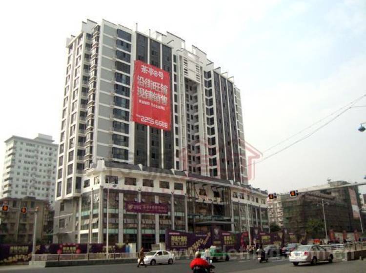 茶亭8号,占据福州最繁华的中心街区——茶亭街中心地段,总规划面积20423.7平米,住宅面积11406.83平米,商业面积4967.02平米,1-4层商业,5-16层为住宅,商业与住宅相辅相承,营造一个繁华于外,生活于内的私密又开扬的空间。16层高层建筑融汇现代与古典,中空玻璃外立面,彰显时尚现代气息,古典灰瓦白墙装饰构架,于现代中不失茶亭传统的古朴韵味,2007年,茶亭8号以先进的品质,精益求精的态度向福州宣示茶亭街的繁华复兴。