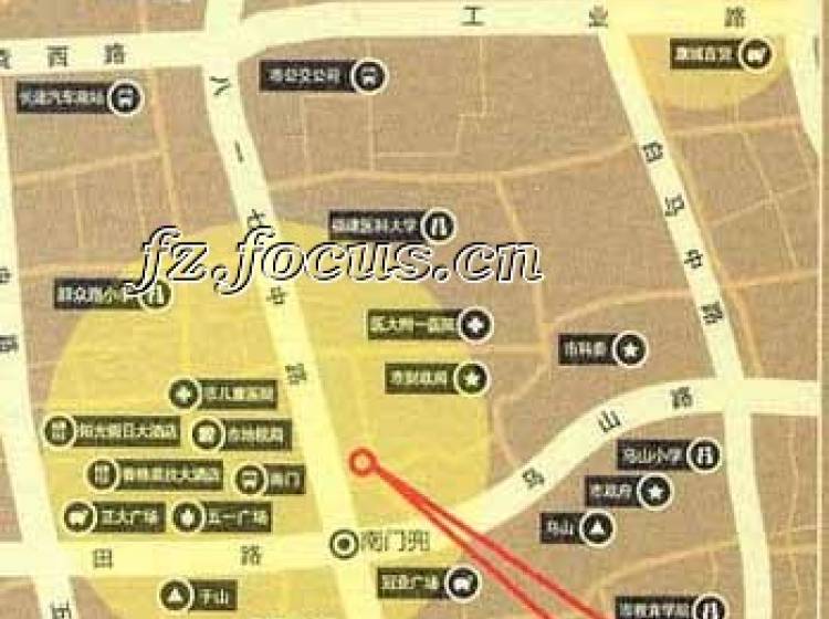 西营里菜市场、西营里茶叶市场、融冠超市等;省科技馆、越洋图书城、延安中学;协和医院、医大附属第一医院、省妇幼保健院、儿童医院等;香格里拉大酒店、福州大饭店、全聚德饭店、德克士、斗牛士西餐厅、上岛咖啡等;招商银行、中国银行、建设银行等。